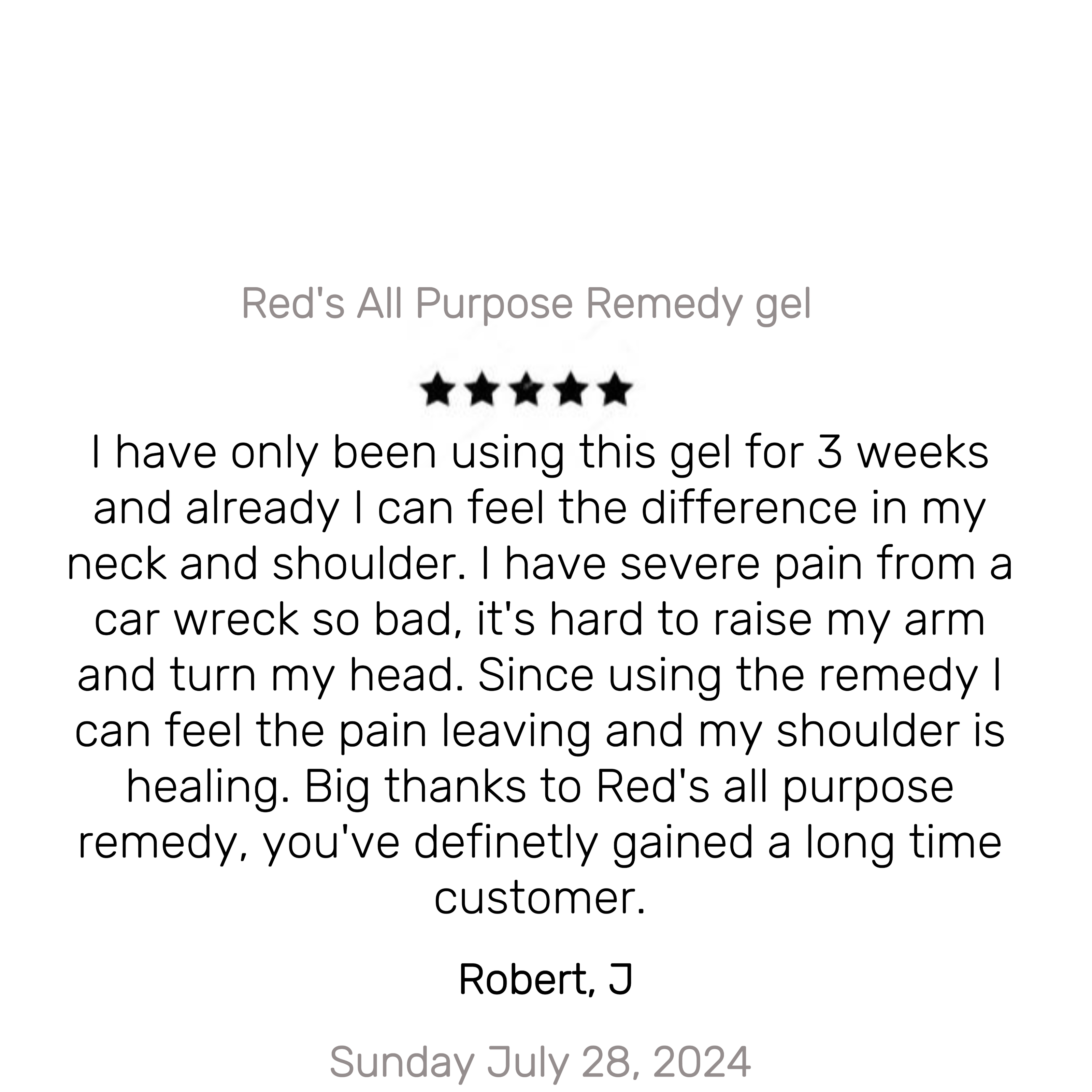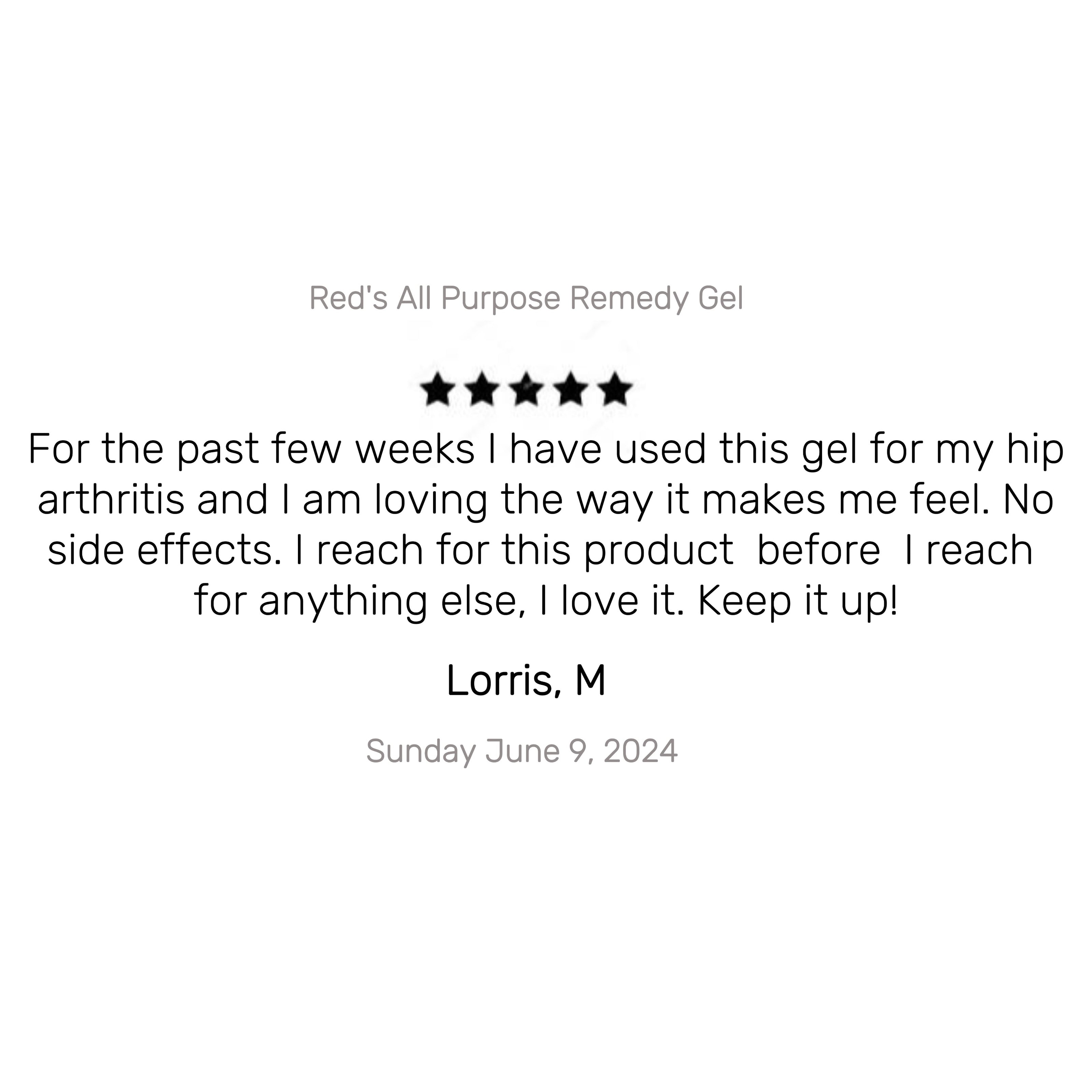 Regain your strength. Red's all purpose remedy offers your body relief of joint stiffness, hip pain, arthritis, inflammation and much more so that you can retire your sick days in the bed and get back to living everyday, pain free